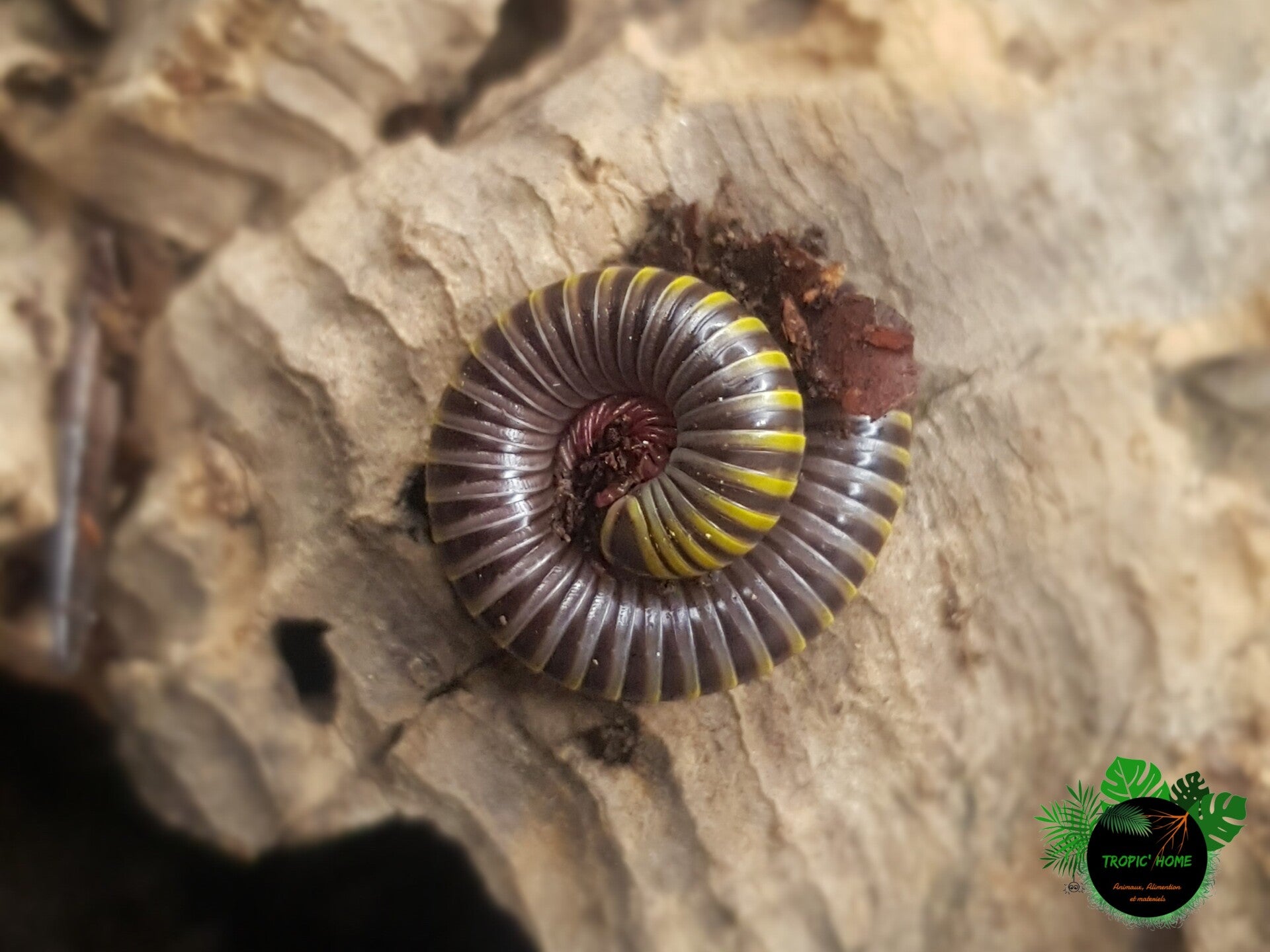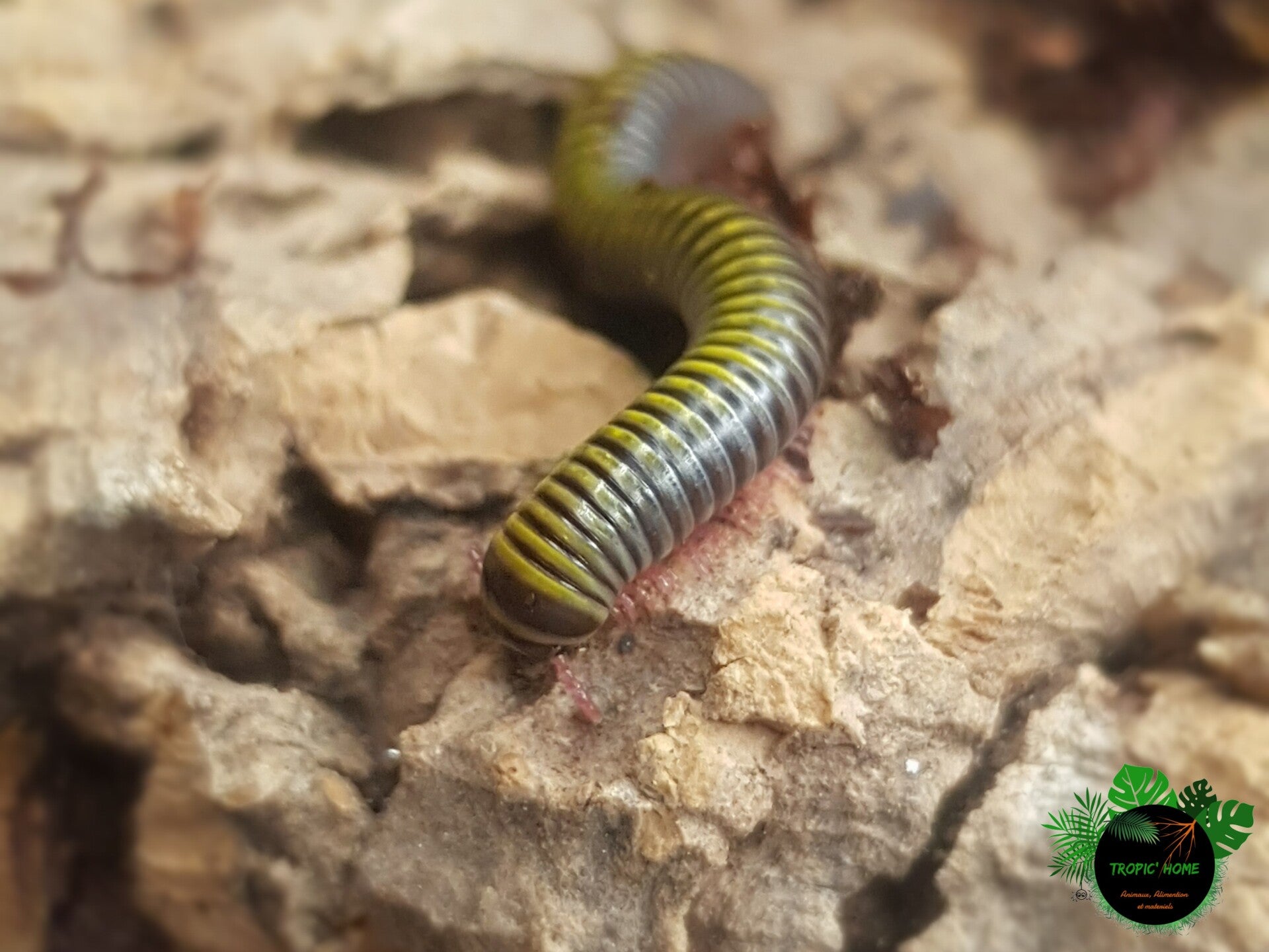 Description: de couleur grise avec des bandes jaunes et des pattes rouge, 4/5cm adulte (petite espèce)